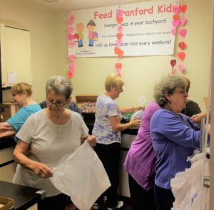 At Branford High School, the organization provides free take-home food bags that are distributed to students each week. Volunteers from FBK gather donations and pack the bags. Students at Branford High School help distribute the bags to students in need.