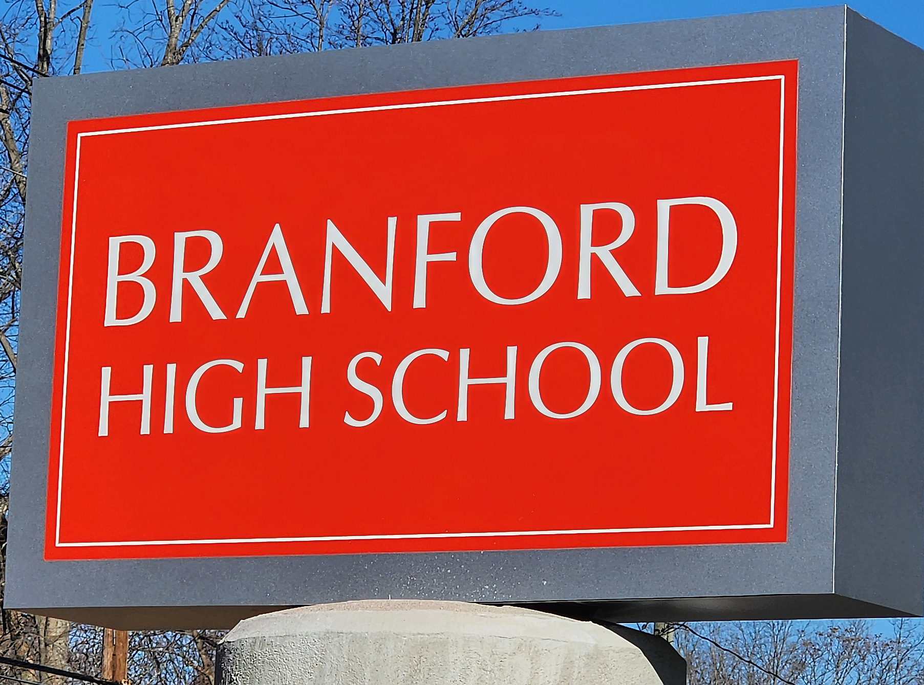 The front of Branford High School has had a different look recently, with a brand new sign sitting on the front lawn.
