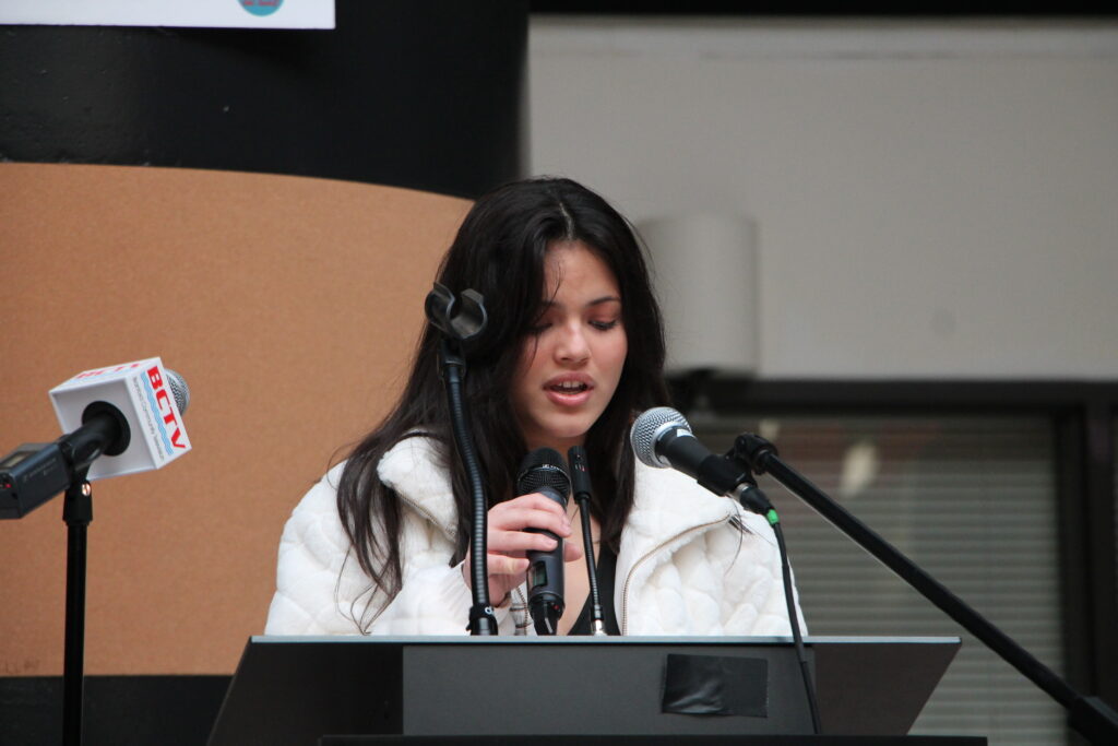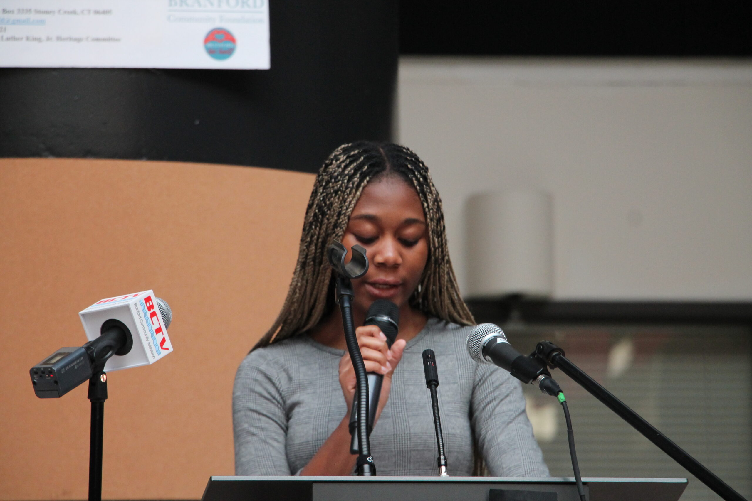 The event also featured speeches by the two winners of the MLK Day poetry contest. Both BHS students – Gabby Silva and Beulah Anigekwu – shared their poems at the event. To read their poems, click here.